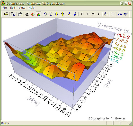 When you click on the custom metric column, the optimization results will be sorted by your own metric and you will be able to display 3D chart of your user-defined metric plotted against optimization variables.
