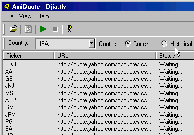 of AmiQuote filled with the list of tickers loaded, as show in picture