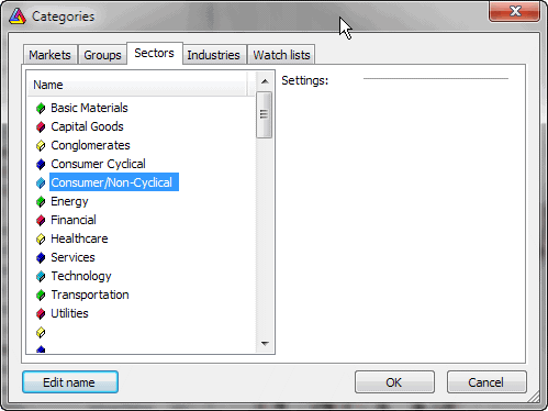 As described above symbol and industries names and relationship can be easily set up quickly using "broker.sectors" and "broker.industries" files. It will save some work needed otherwise to enter this information in Symbol->Categories window.