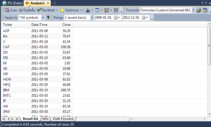One of the most useful features of the Analysis window is called "Exploration". Basically, an exploration works in a similar way to scan but instead of looking for and reporting just buy/sell signals it allows you to generate customizable screening (or exploration) report that can give you much more information than simple scan.