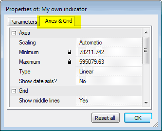 Also in the "Axes & Grid" tab you will be able to change settings for axes, grids and other charting options referring to this particular chart: