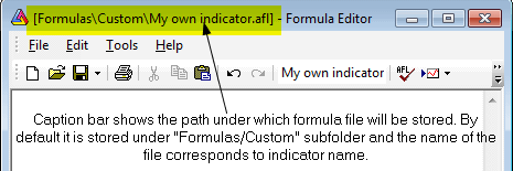 For further reference on using Formula Editor please consult Environment - Formula Editor and AmiBroker Formula Language - AFL Tools sections of AmiBroker User's guide and using AFL editor.