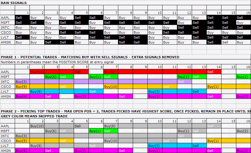 As you can see Short signals get interleaved between Long signals even though their absolute values of scores are smaller than corresponding scores of long signals. Also there were only 2 short signals for that particular bar so, the rest of the list shows long signals in order of position score. Although this feature can be used independently, it is intended to be used in combination with MaxOpenLong and MaxOpenShort options.