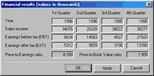 This window provides fundamental financial data of corporation as: