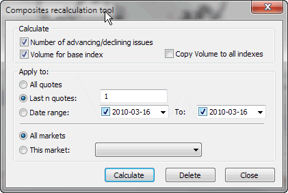 Number of advancing/declining issues and choose the markets for which you calculate composites and the time range.