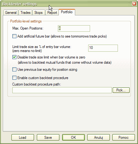 This prevents entering trades greater than a given percentage of entry bar's volume. For example, if backtesting daily data, and today's volume for thinly traded stock is 177,000 shares, setting this to 10% will limit the maximum trade size to 17,700 shares (10% of total daily volume). This prevents 'affecting the market' by huge orders.