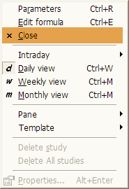 To remove the indicator, press Close button from the menu on the top right-hand side of the indicator pane (the menu will be displayed if you place the mouse cursor in the nearby). This menu allows you also to move the indicator pane up/down or maximize the pane.