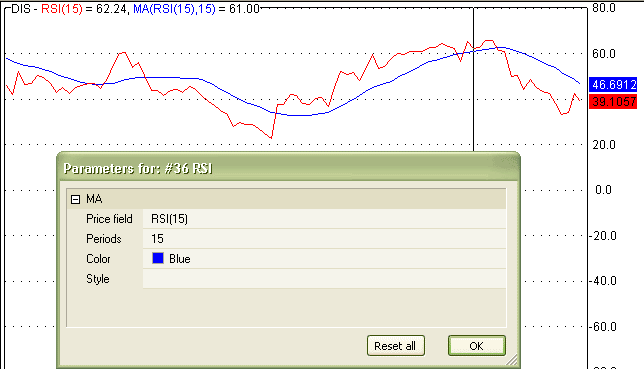 AmiBroker 4.62.1 allows you to easily create and modify your indicators with few moves of a mouse. From now on you can build sophisticated indicators without any programming knowledge at all. The available (ready-to-use) indicators are listed in Charts tab of the Workspace window.